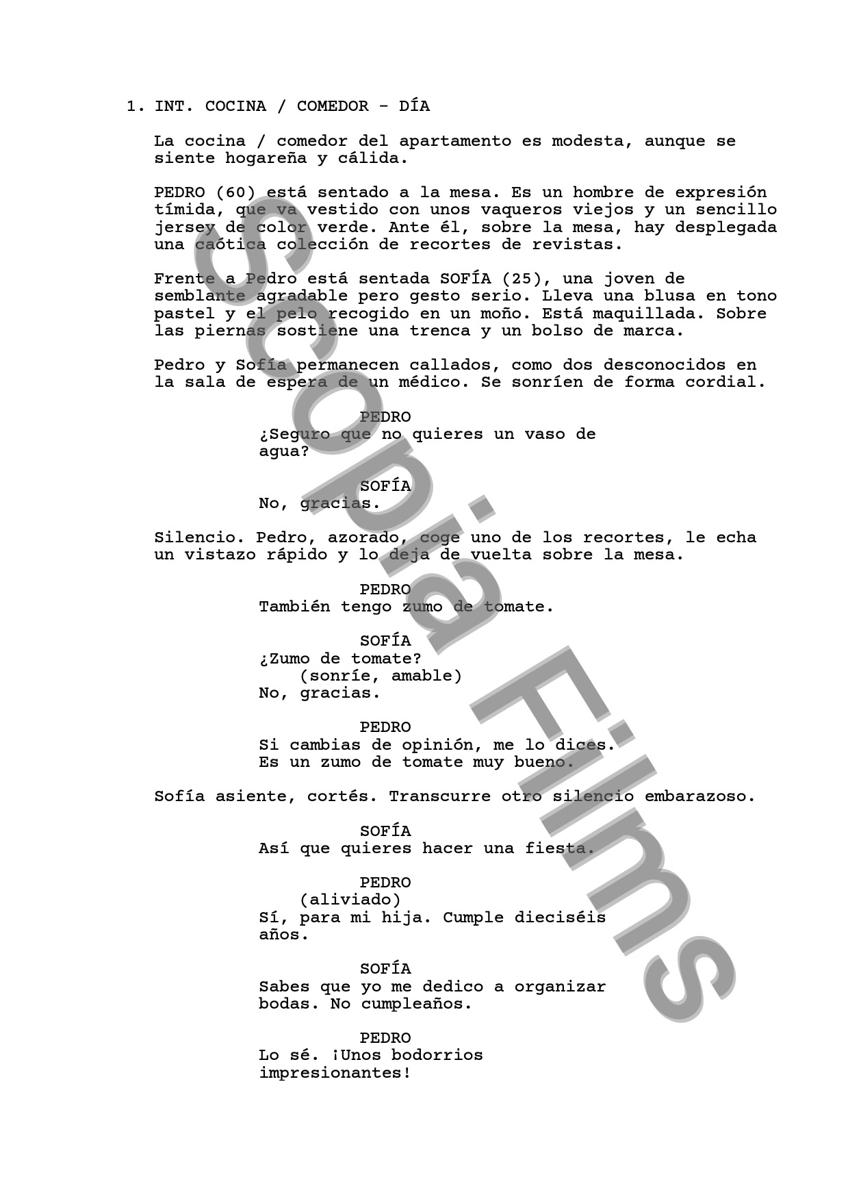 Pedro ha contratado a Sofía, una renombrada organizadora de eventos, para hacerle un encargo muy pintoresco. Pero a medida que los dos conversan, las extravagancias de Pedro van destapando una dolorosa realidad.